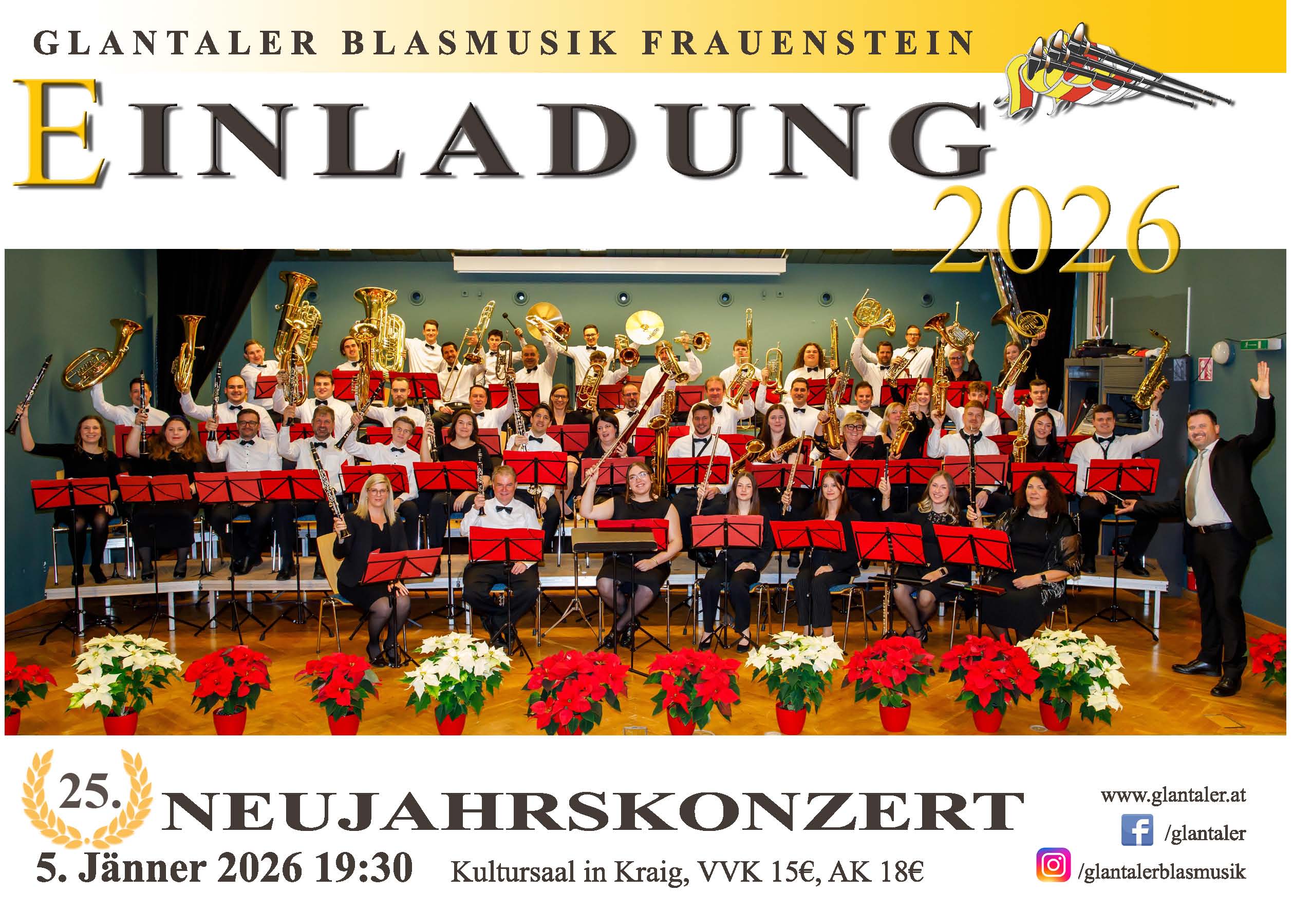 Neujahrskonzert 2026 11. Januar 202611. Januar 2026Posted by wpadmin Am 5. Jänner 2026 fand bereits zum 25. Mal das Neujahrskonzert im Kultursaal in Kraig statt. Fotos: Anton Wieser, Kleine Zeitung (Gebeneter)